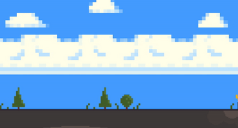 - Ciclo de día y noche, cambia cada 60 segundos ( el fondo de la noche y los sprites del sol y la luna son creados por mi con inspiración de internet)